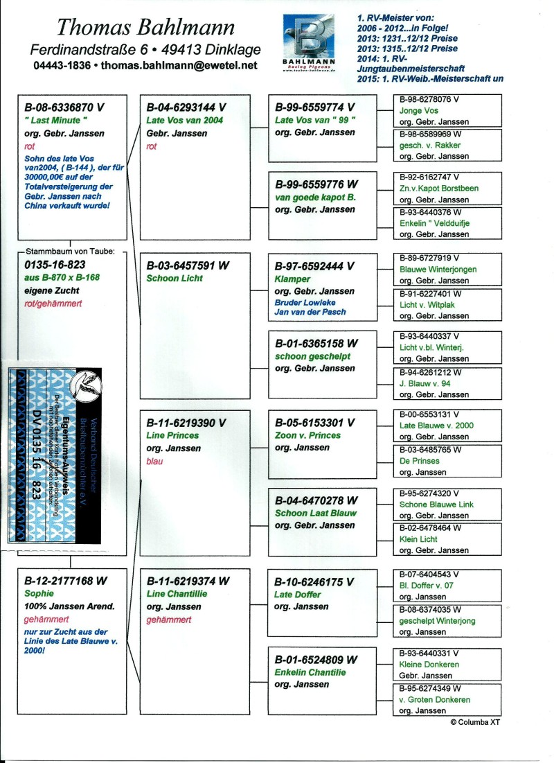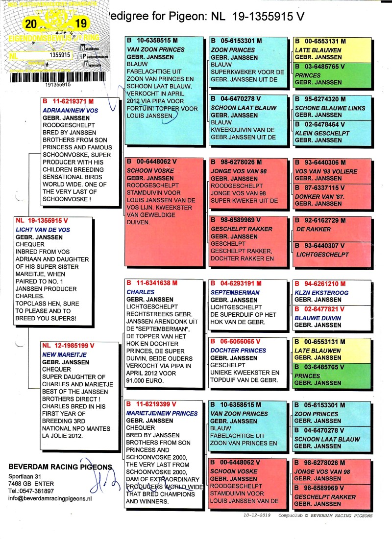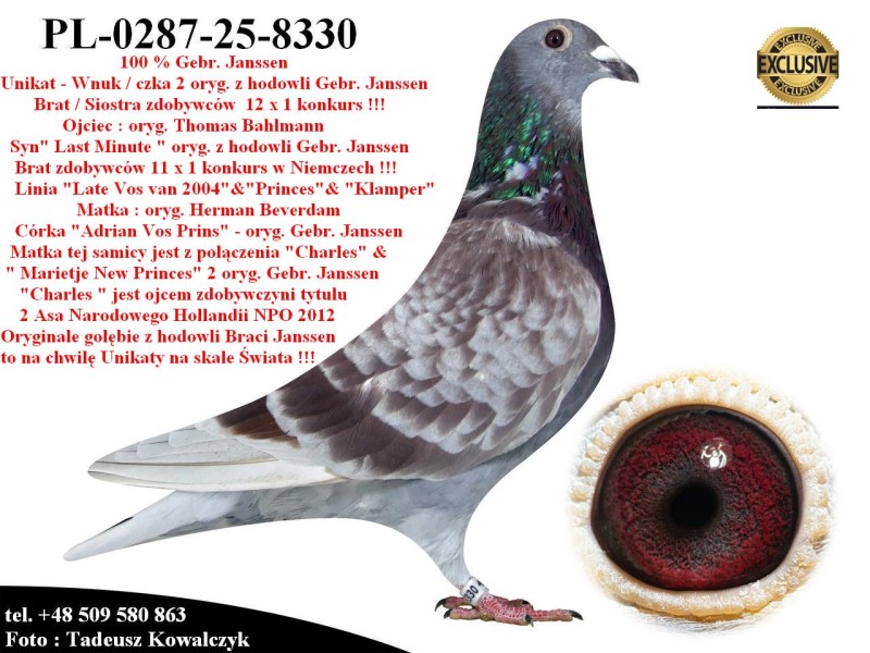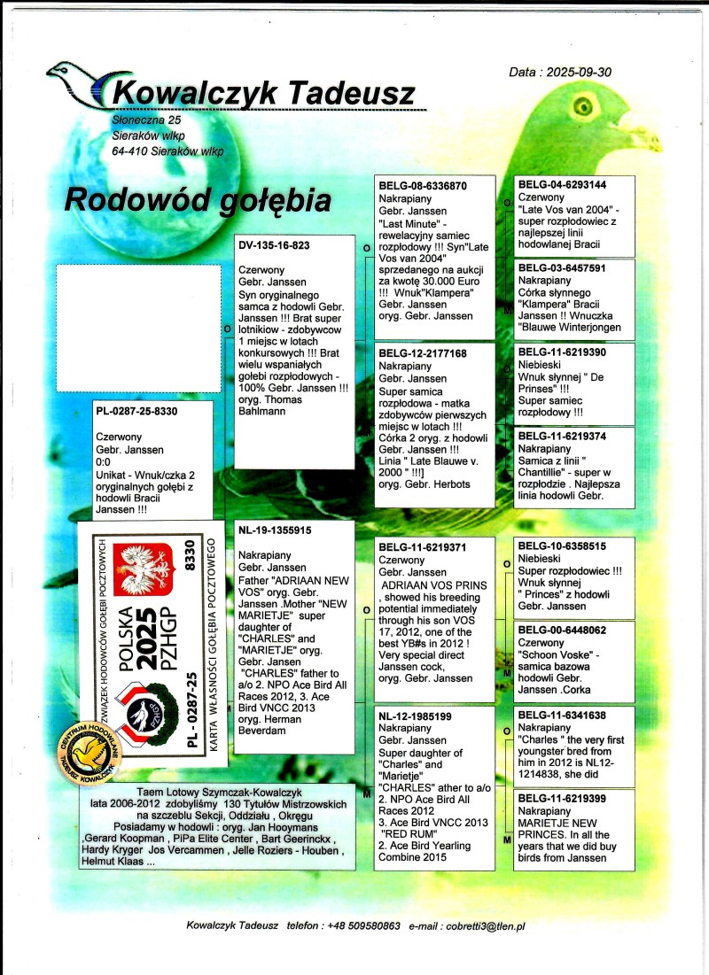 PL-0287-25-8416 - Potomek najlepszych gołebi z hodowli Barta Geerinckxa
