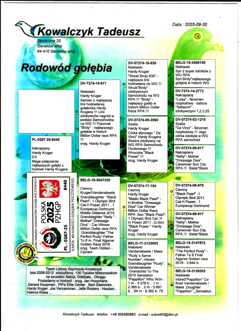 PL-0287-25-8440 - Potomek najlepszych gołębi z hodowli Hardy Krugera