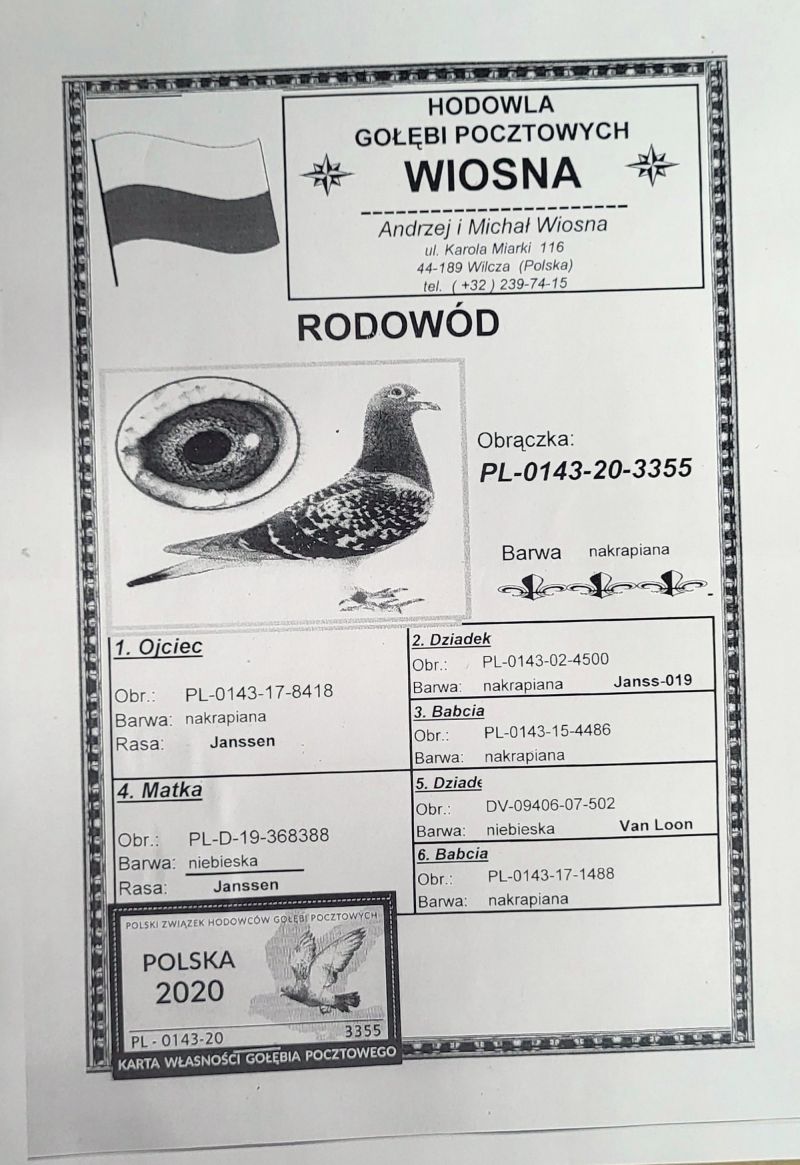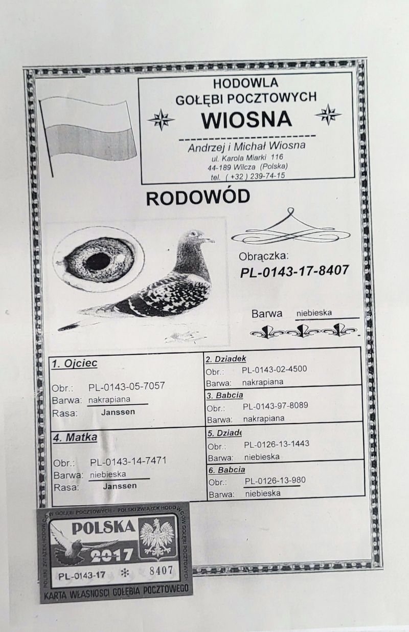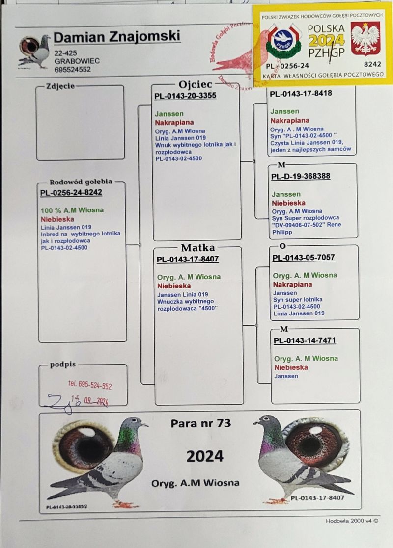 Oryginalny gołąb z hodowli Damiana Znajomskiego. Szczegóły pochodzenia w rodowodzie. Więcej informacji pod nr tel.: +48 669 289 336