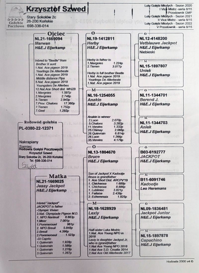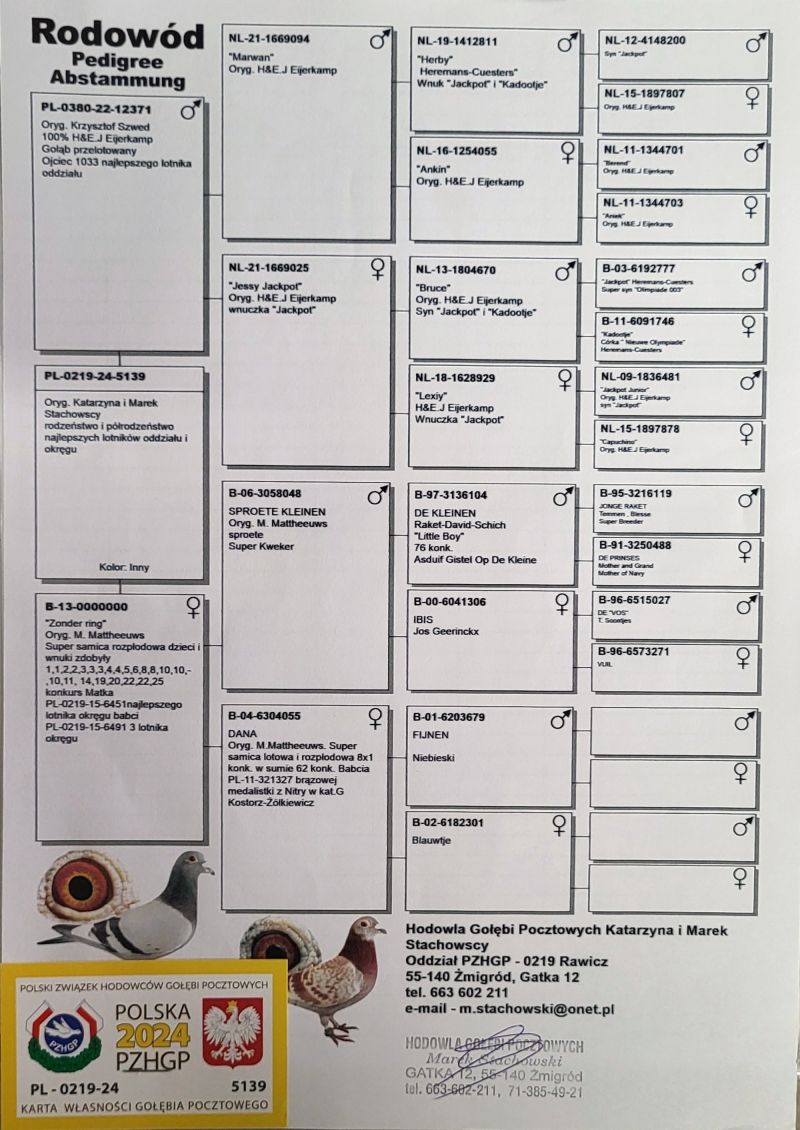 Oryginalny gołąb z hodowli Marka Stachowskiego. Szczegóły pochodzenia w rodowodzie. Więcej informacji pod nr tel.: +48 669 289 336