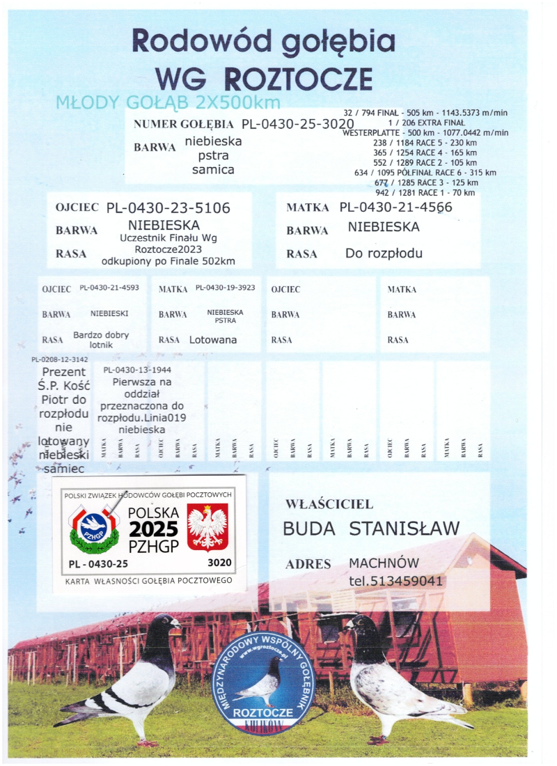 PL-0430-25-3020 WG ROZTOCZE FINAŁ 32 poz.Ekstra Finał WESTERPLATTE 1 miejsce !!!!!!2x500km
