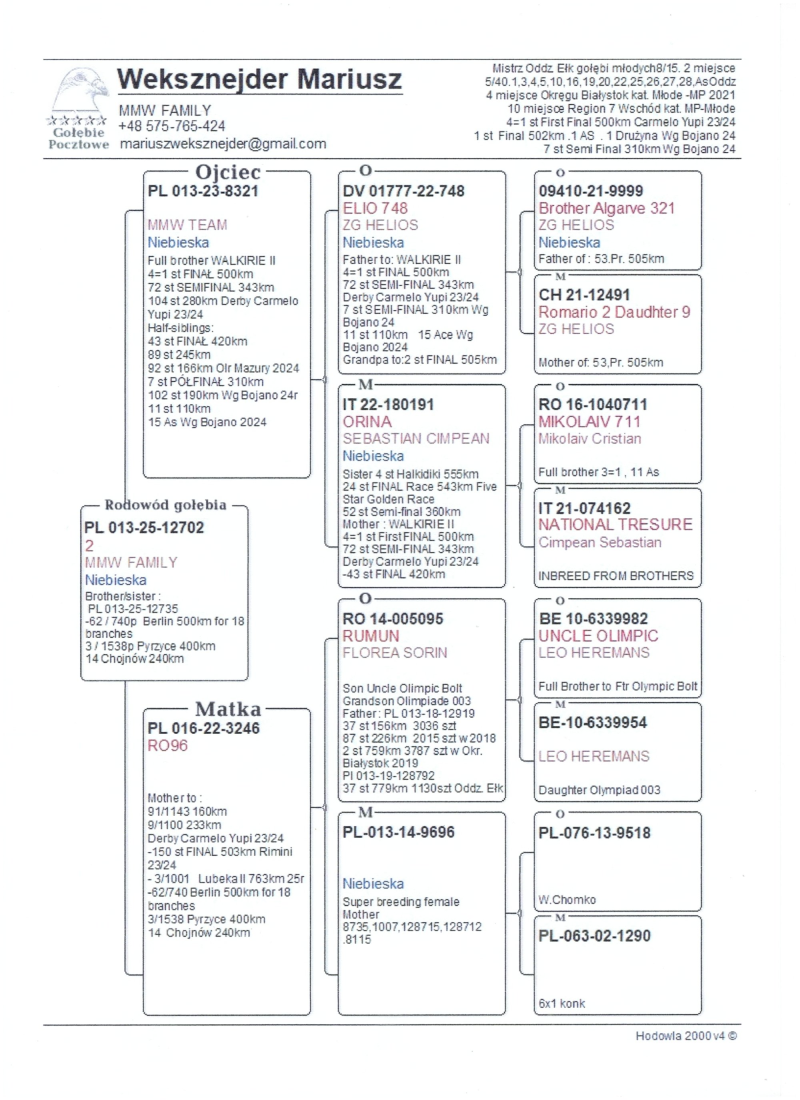 więcej info.w rodowodzie i na stronie Benzing Live.oneloftrace.live/lofts/260?season=2458&tab=flights