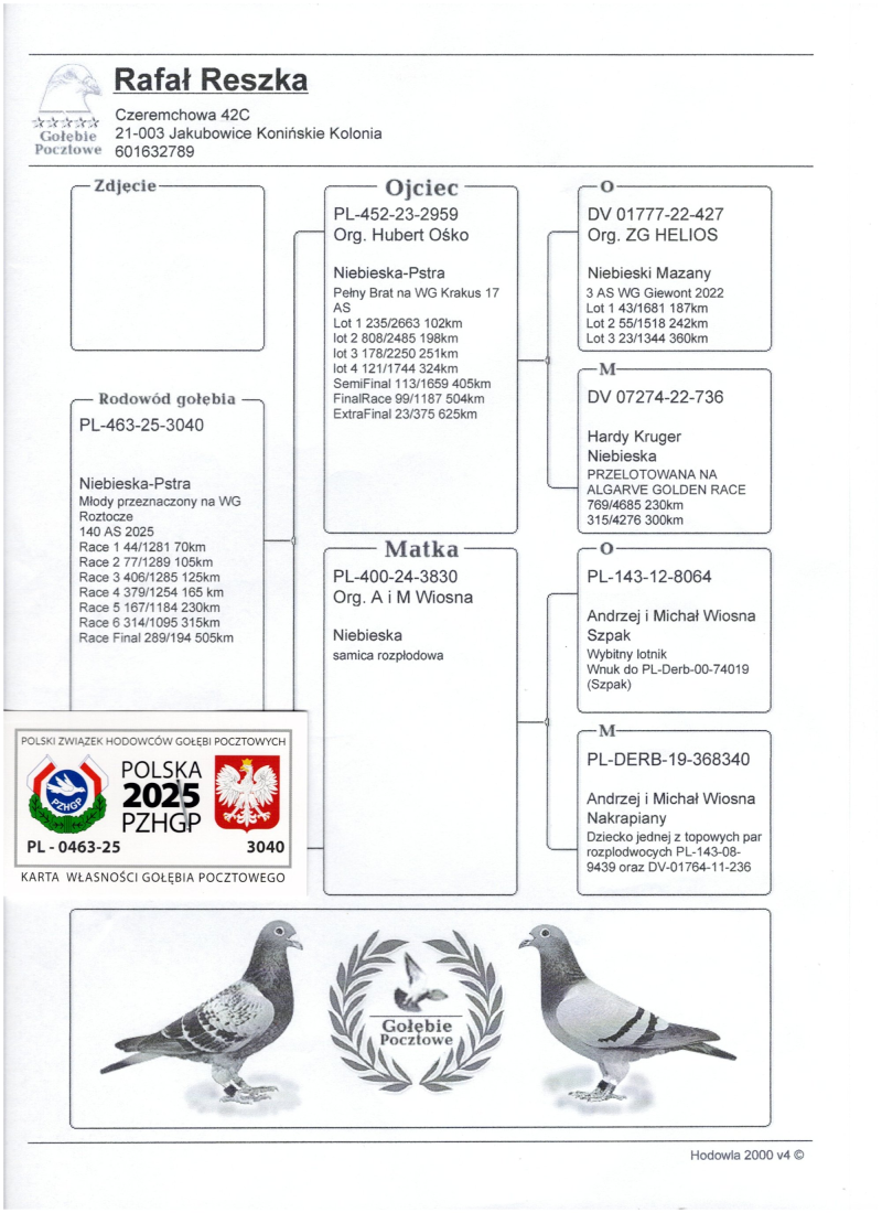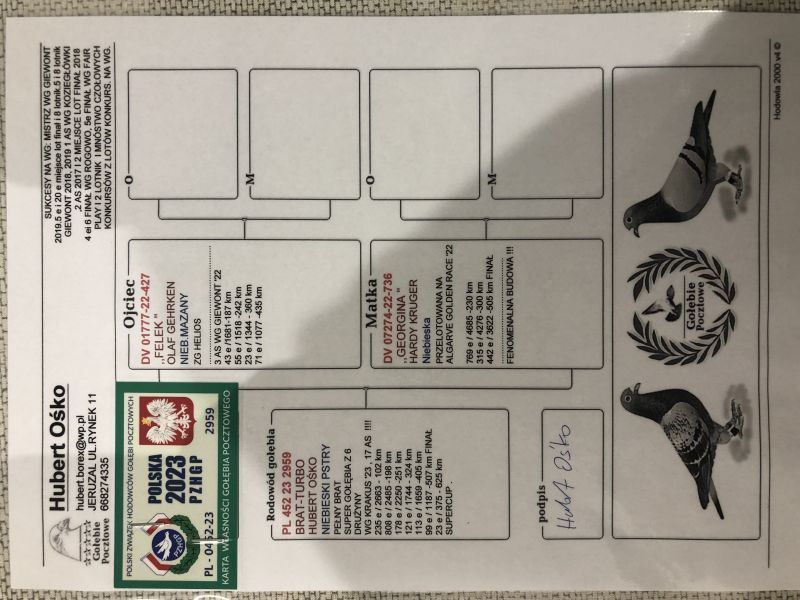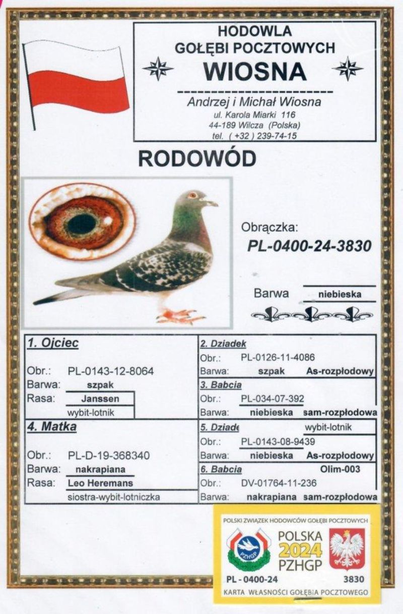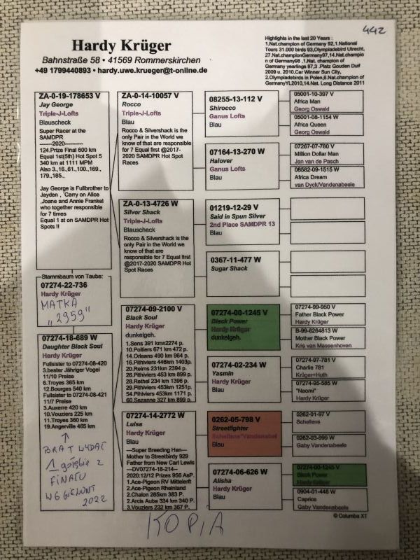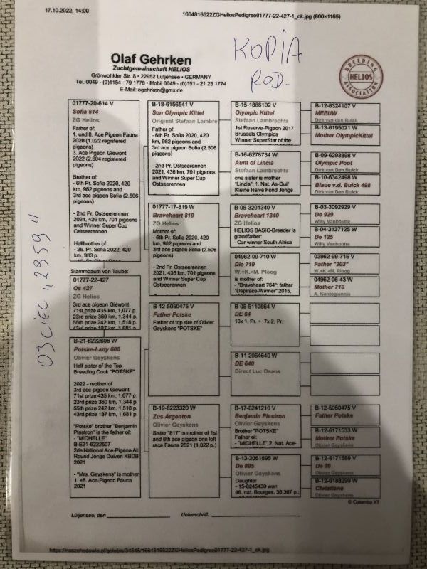 więcej info.w rodowodzie i na stronie Benzing Live.oneloftrace.live/lofts/260?season=2458&tab=flights