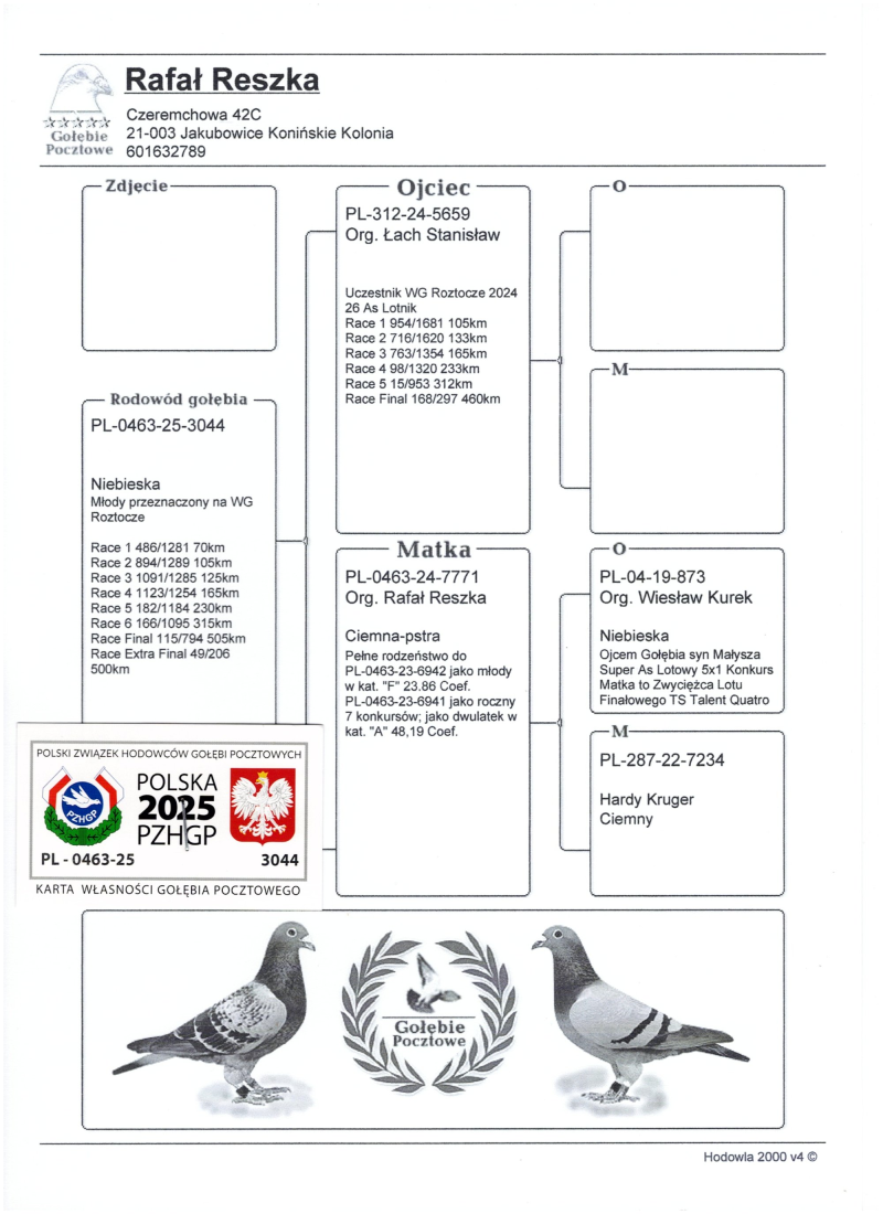 PL-0179-25-5296 - Zawisza Zbigniew i Damian – gołąb po całym programie lotowym