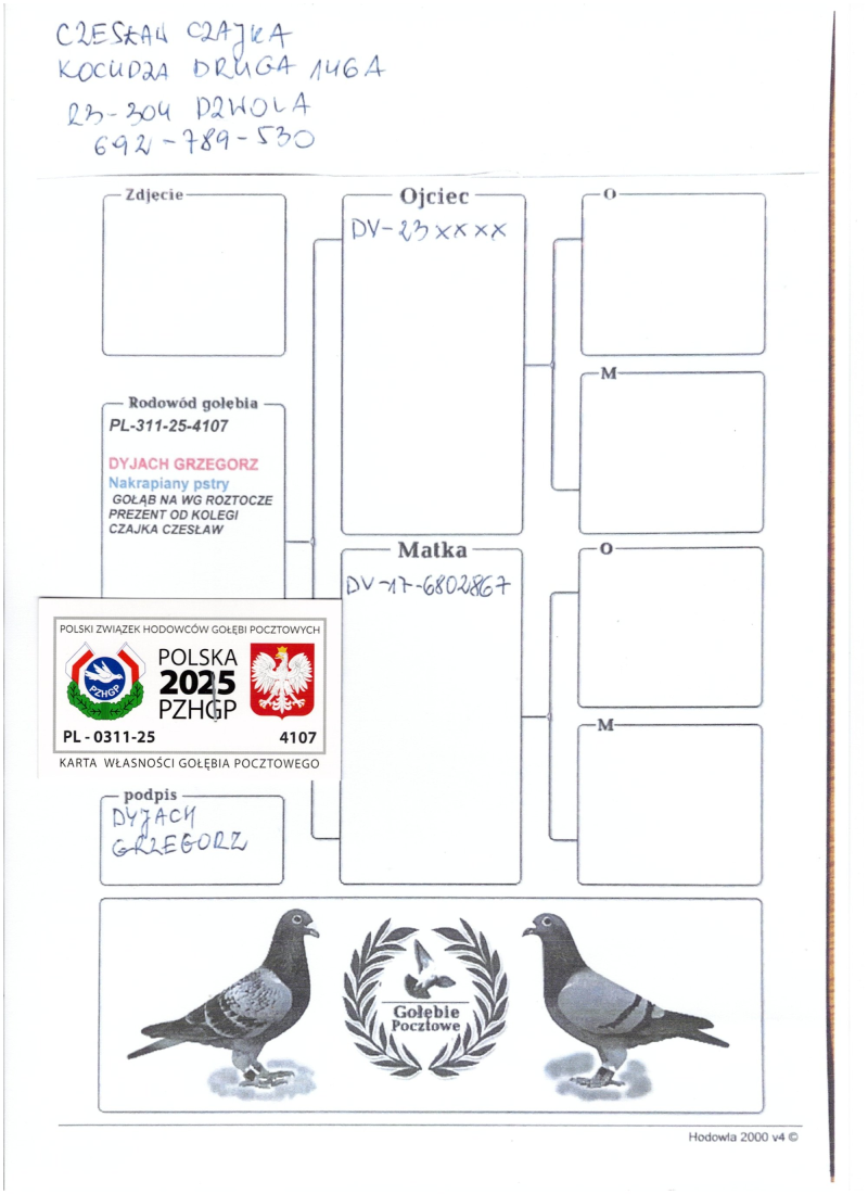 PL-0179-25-5146 - Zawisza Zbigniew i Damian – gołąb po całym programie lotowym