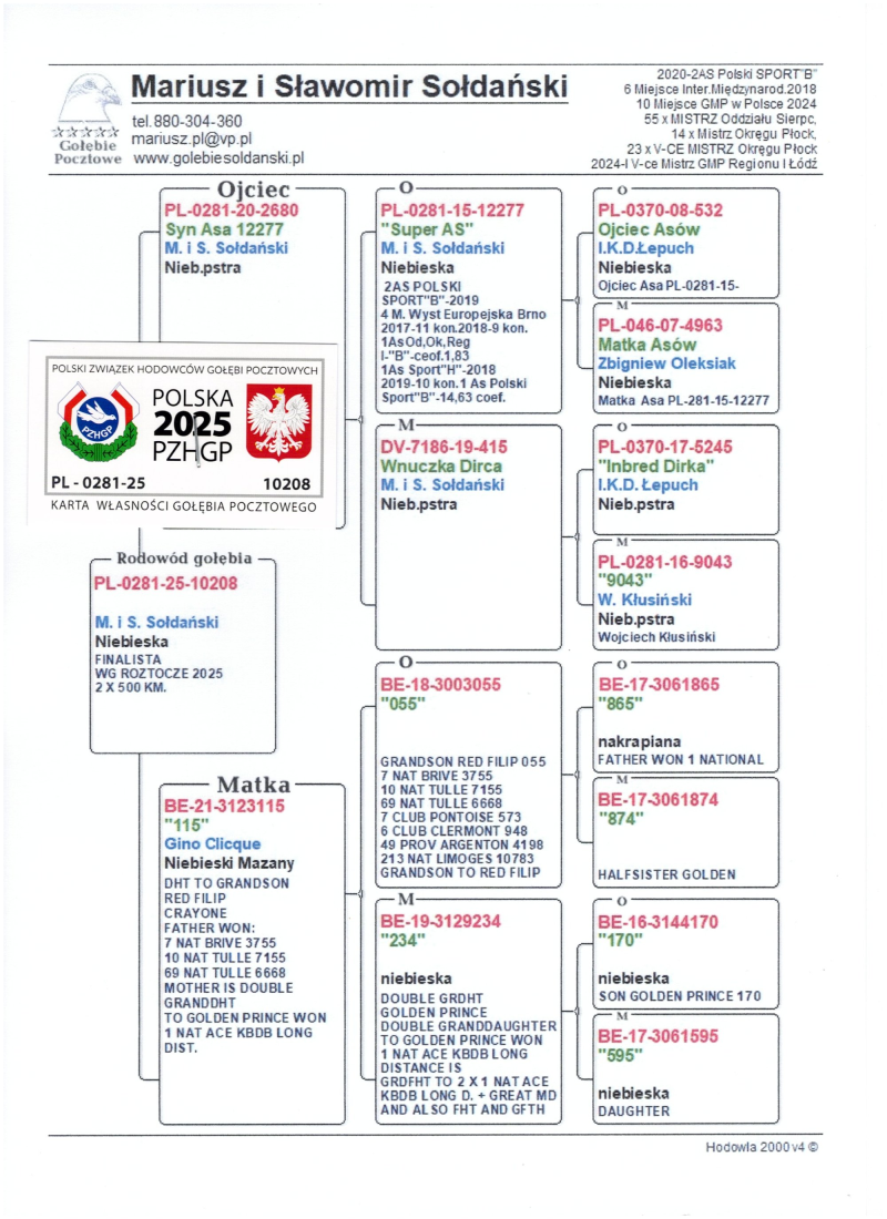 PL-0179-25-5322 - Zawisza Zbigniew i Damian – gołąb po całym programie lotowym