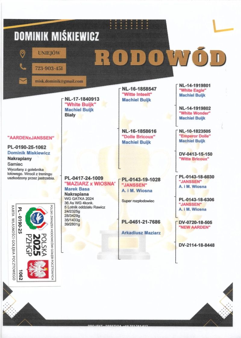 Płeć: samiec Hodowca - rasa: Oryg. Dominik Miśkiewicz Zakończenie: 20.10.2025 godz. 21:39