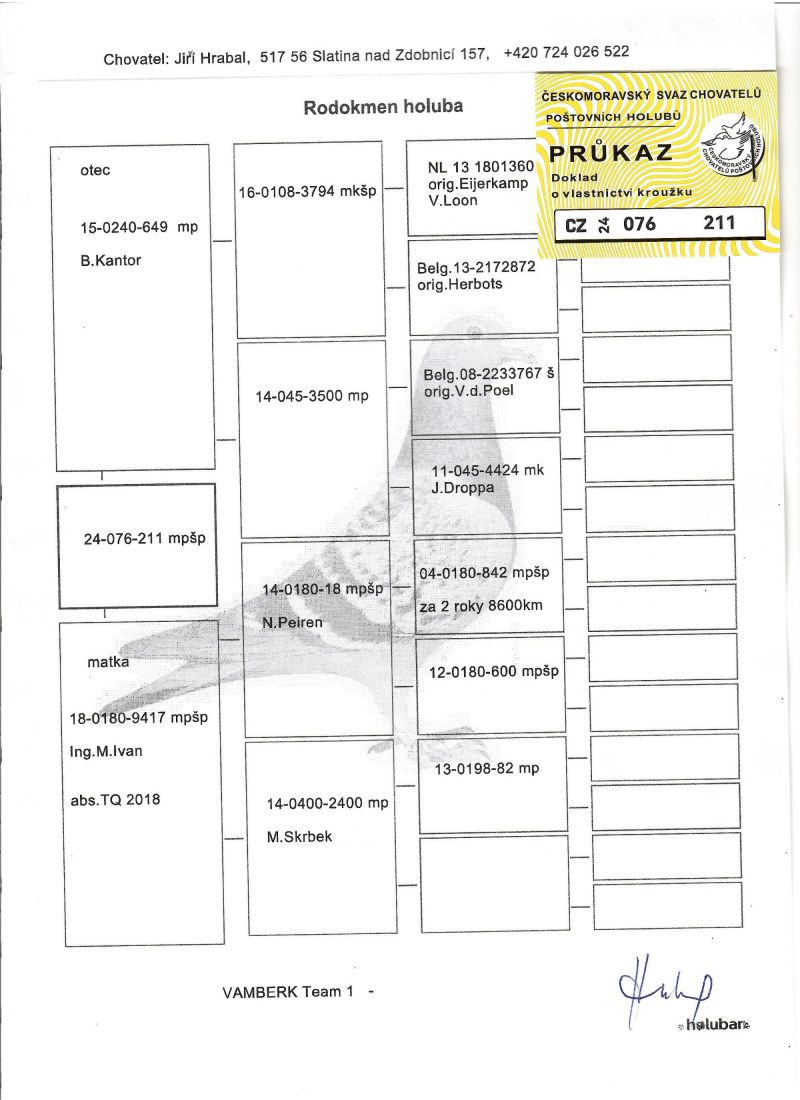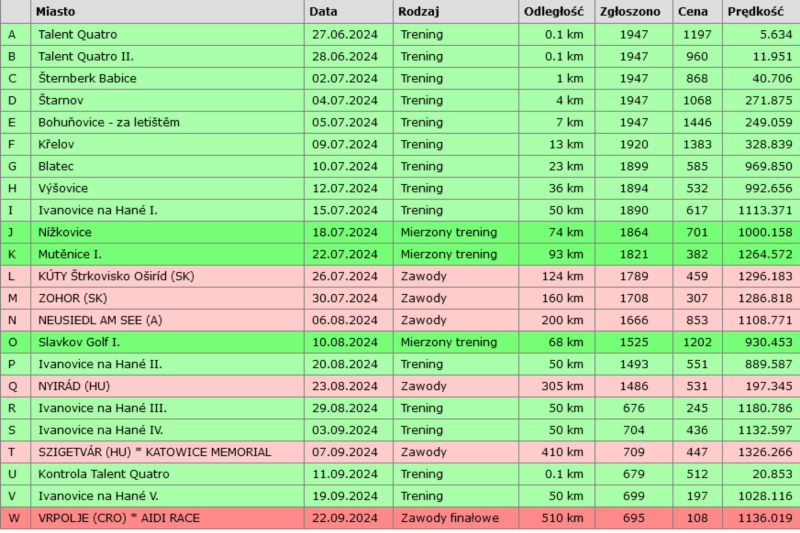 CZ-076-24-211 Gołąb lotowany na wspólnym gołębniku Talent Quatro