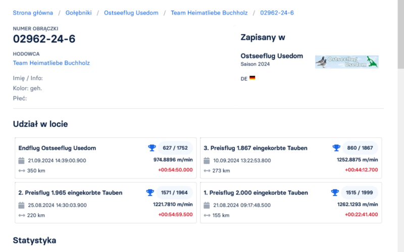 DV-02962-24-6 Gołąb lotowany na wspólnym Gołebniku Usedom