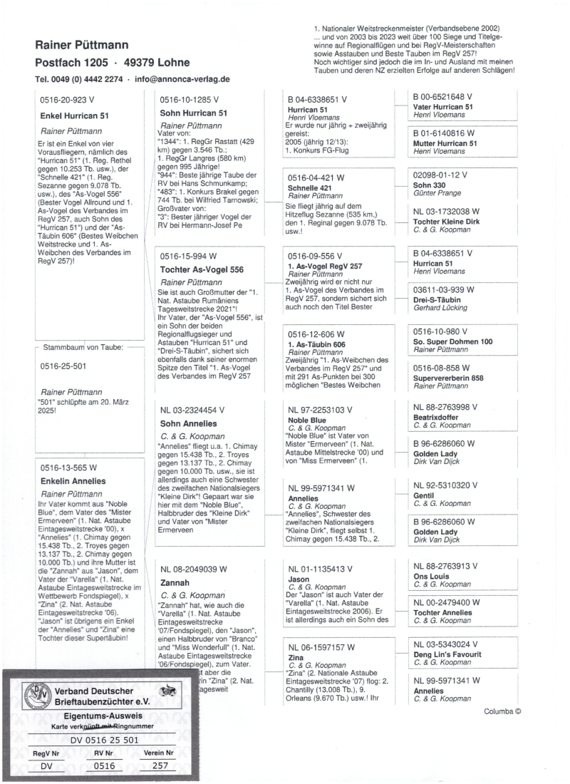 PL-0179-25-5306 - Zawisza Zbigniew i Damian – gołąb po całym programie lotowym