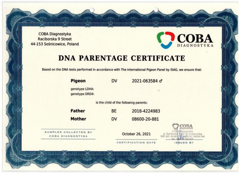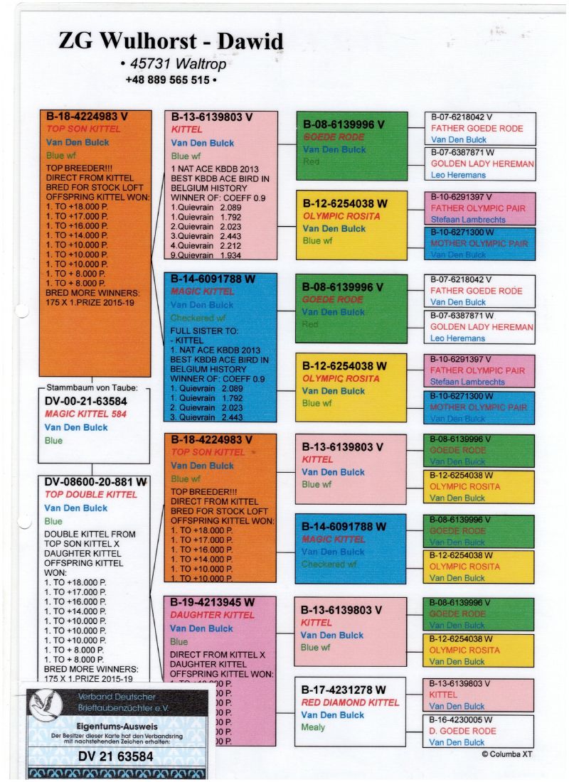 Oryginalny gołąb z hodowli ZG Wulhorst - Dawid - Van Den Bulck. Możliwość wysyłki kurierem. Więcej informacji w rodowodzie oraz pod numerem telefonu.