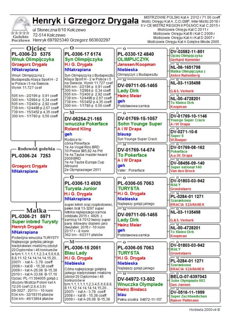 Połatyńscy-Lorens Z Gołebnika rozpłodowego G i D Drygała