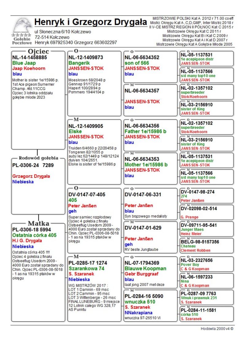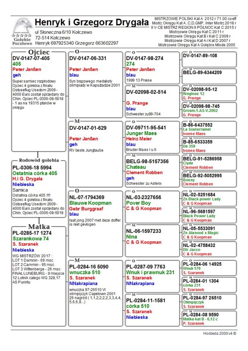 Wiecej informacji w rodowodzie oraz pod numerem telefonu. zapewniam transport gołębi kupionych na moich aukcjach. Gołąb zostanie dostarczony na wskazany adres w Polsce.