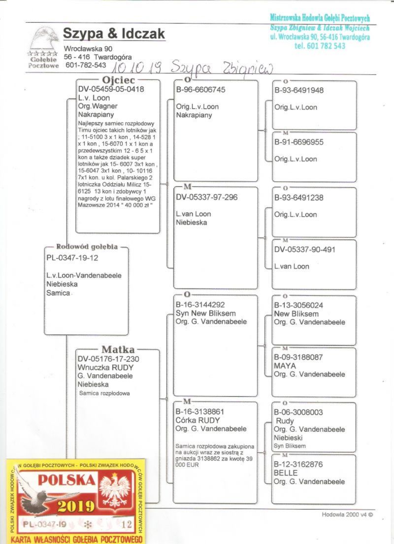 Wiecej informacji w rodowodzie oraz pod numerem telefonu. zapewniam transport gołębi kupionych na moich aukcjach. Gołąb zostanie dostarczony na wskazany adres w Polsce.