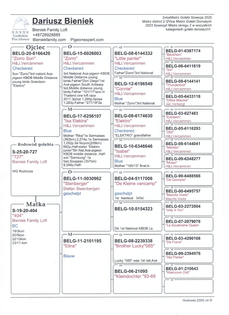 więcej info.w rodowodzie i na stronie Benzing Live.oneloftrace.live/lofts/260?season=2458&tab=flights
