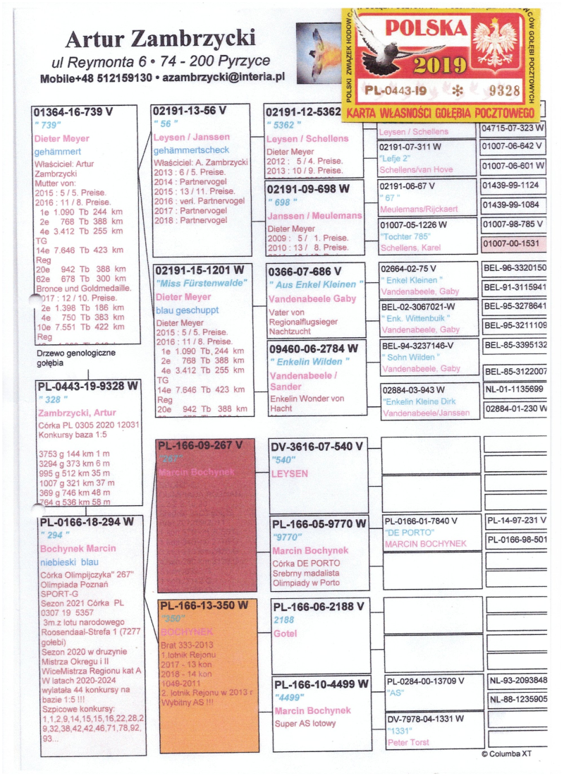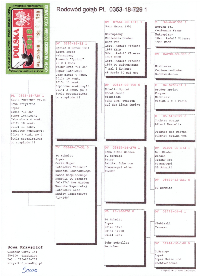więcej info.w rodowodzie i na stronie Benzing Live.oneloftrace.live/lofts/260?season=2458&tab=flights