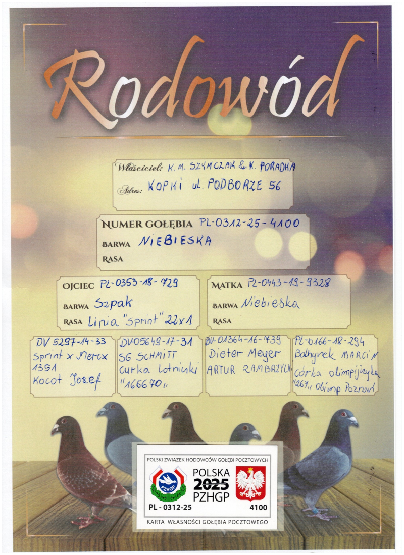 Płeć: samiec Hodowca - rasa: Oryg.K.M.SZYMCZYK & K.PORADKA Zakończenie: 18.10.2025 godz. 18:48