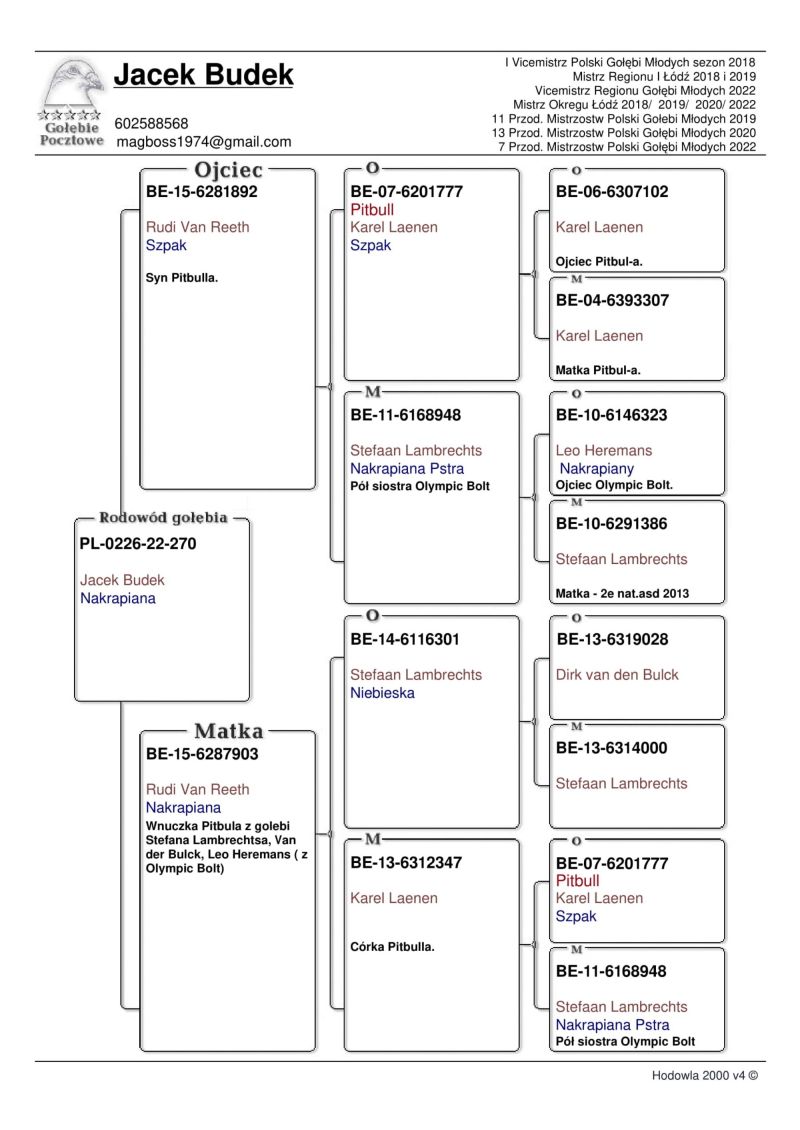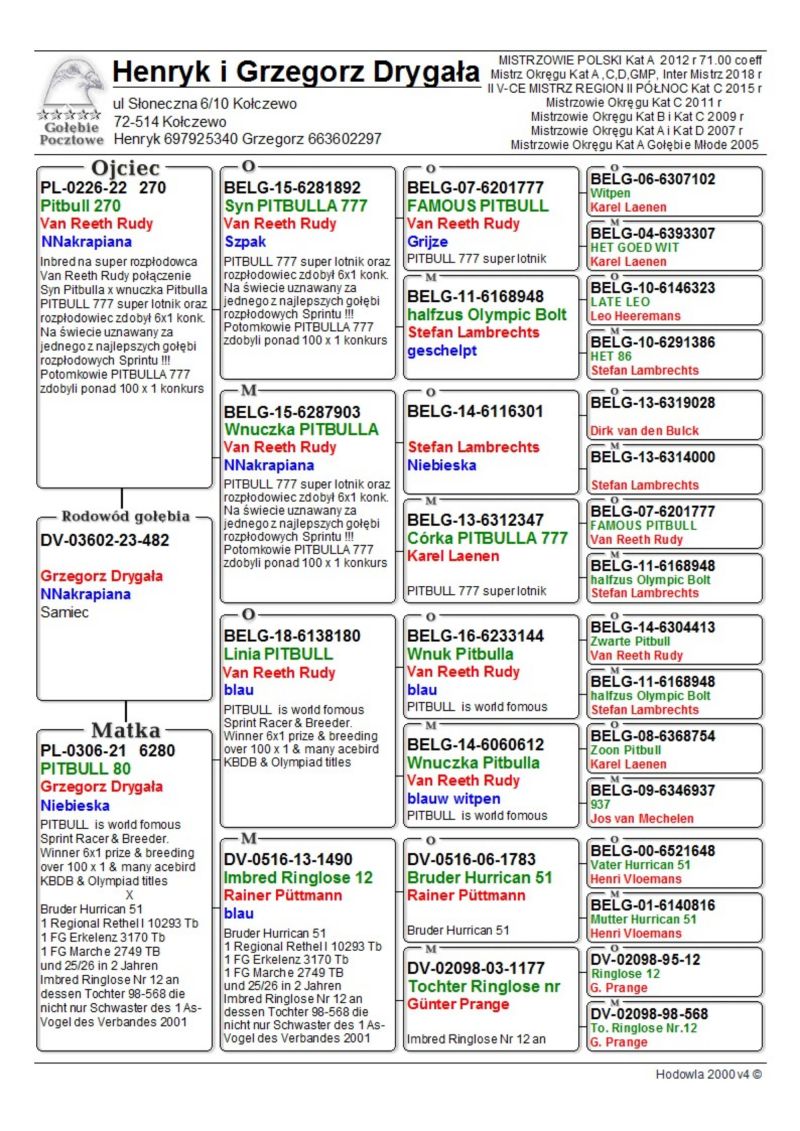 PL-0179-25-5103 - Zawisza Zbigniew i Damian – gołąb po całym programie lotowym