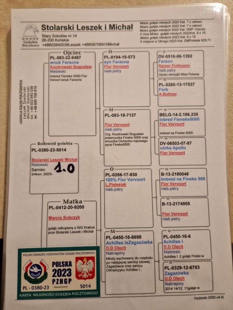 Płeć: samiec Hodowca - rasa: Stolarski Leszek i Michał Zakończenie: 21.10.2025 godz. 20:21