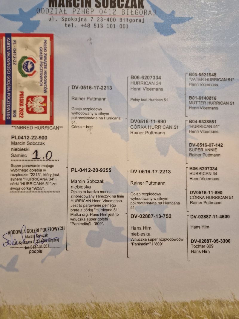 PL-0179-25-5190 - Zawisza Zbigniew i Damian – gołąb po całym programie lotowym