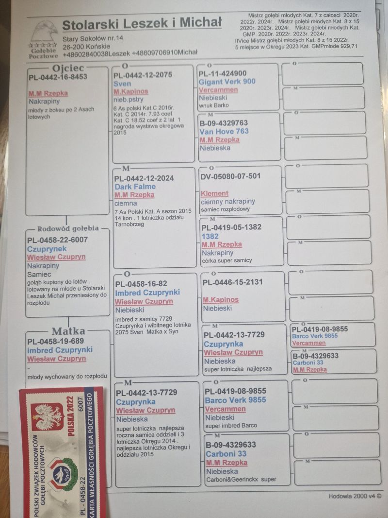 Płeć: samiec Hodowca - rasa: Stolarski Leszek i Michał Zakończenie: 21.10.2025 godz. 20:33