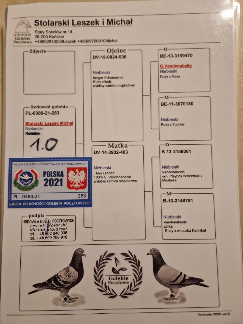 Kontakt: 602840038Opis: Samczyk w trakcie pierzenia. Oryginalny gołąb z hodowli Stolarski Leszek i Michał. Więcej informacji w rodowodzie bądź pod numerem telefonu 602840038. Przed licytacja proszę o kontakt w sprawie dogadania