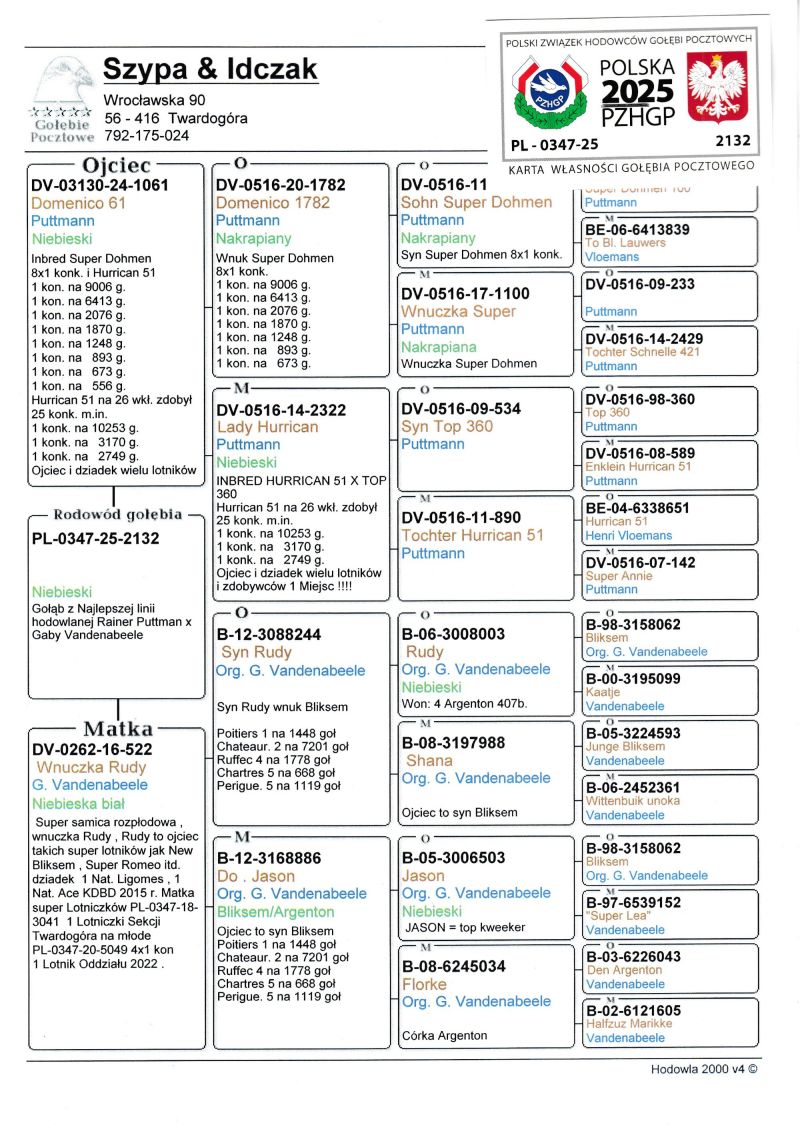 PL-0216-25-4297 Inbred Black Power Hardy Kroger - matka po programie wg w Niemczech
