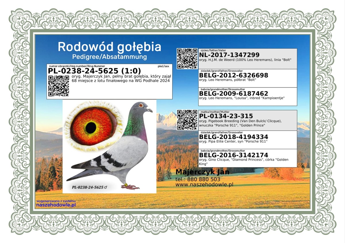 PL-0459-25-4107 Syn dwóch najlepszych gołębi na gołębniku 1 As okr. Kat A & 1 As okr. kat. B