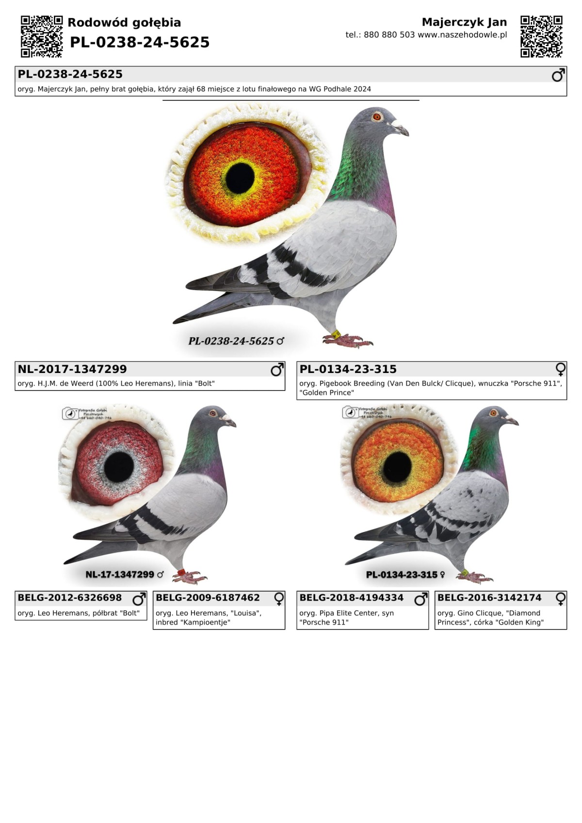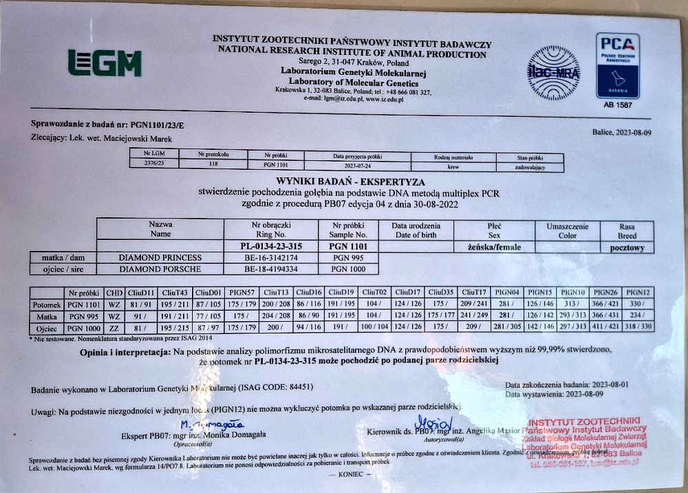 PL-013-25-5404 Wnuk Olympic Rico 3 gołąb na Olimpiadzie w Oradei w Rumunii w 2022r. x podwójna wnuczka Pitbull 6x1 KUP TERAZ