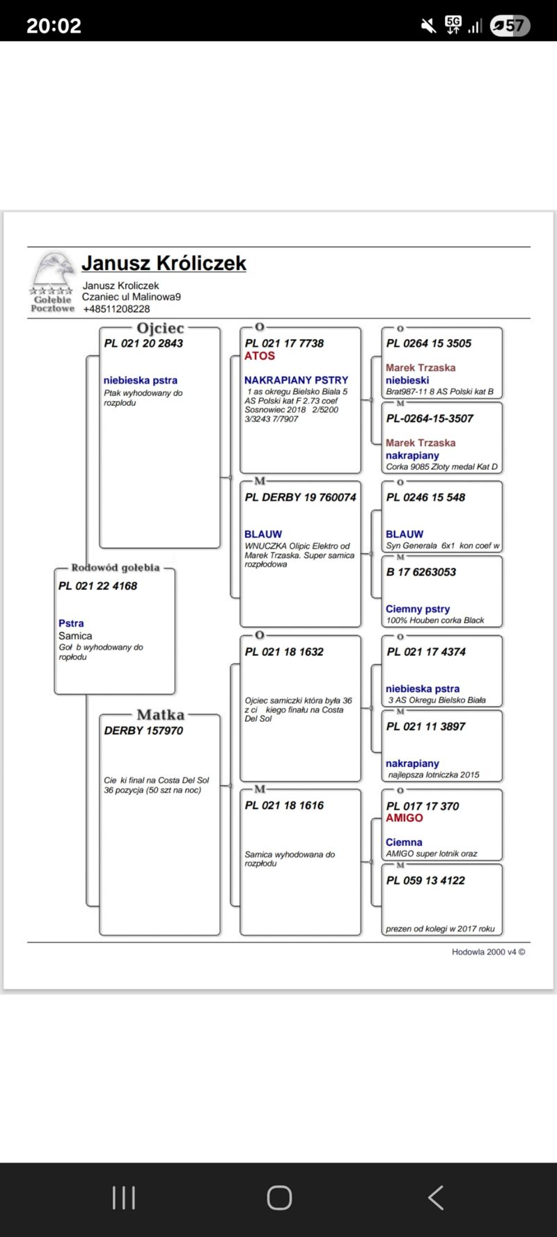 PL-012-25-9704 WG ROZTOCZE FINAŁ 57poz.505km EXTRA FINAŁ 82poz. 500km 54 AS 2X500km