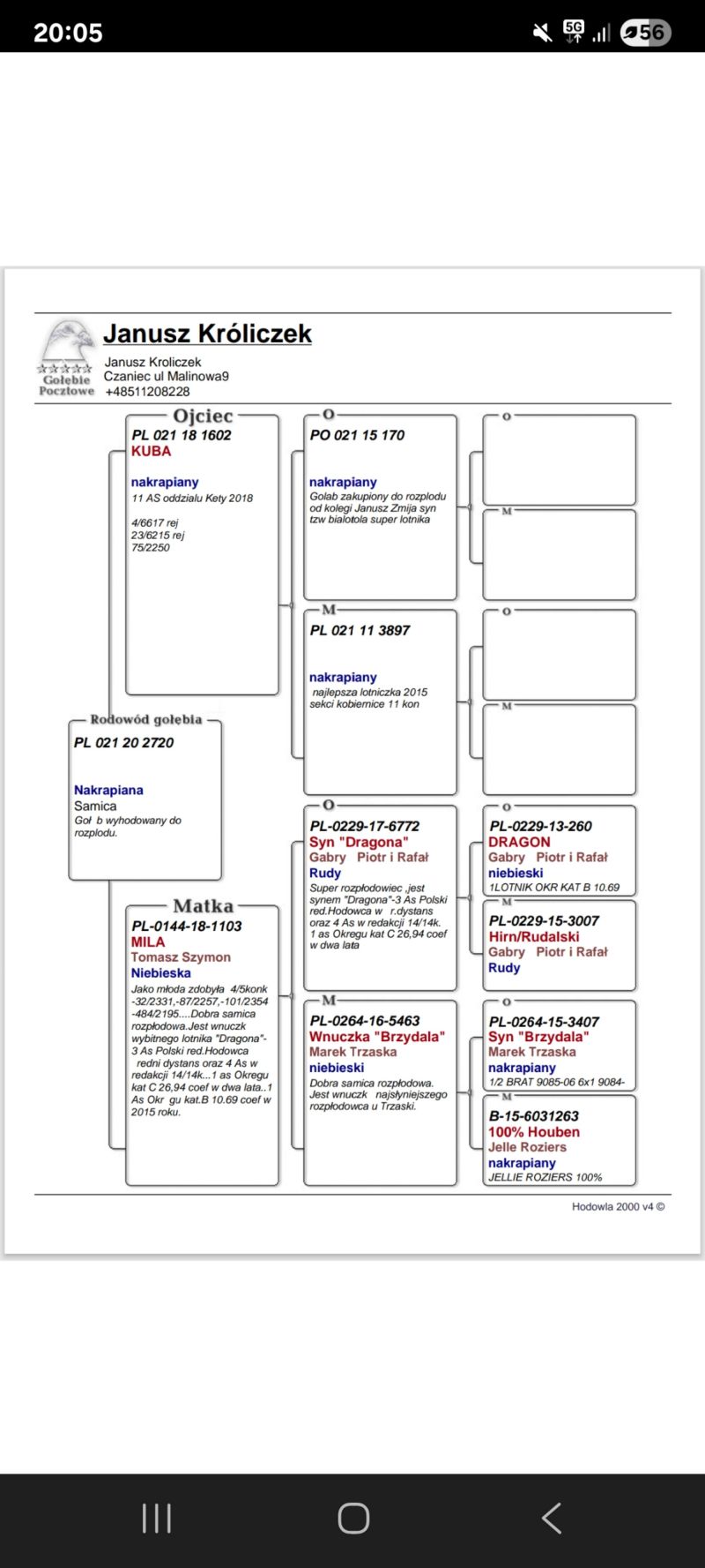Sprzedam oryginalnego gołębia Janusz Króliczek super samica rozpłodowa więcej info w rodowodzie cała hodowla na sprzedaż zapraszam na moje aukcje
