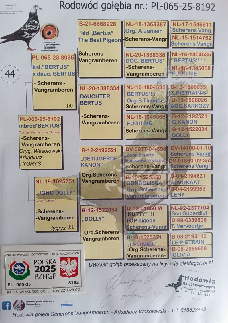 PL-065-25-8192 Oryg. Wesołowski Arkadiusz - 100% Scherens Vangramberen