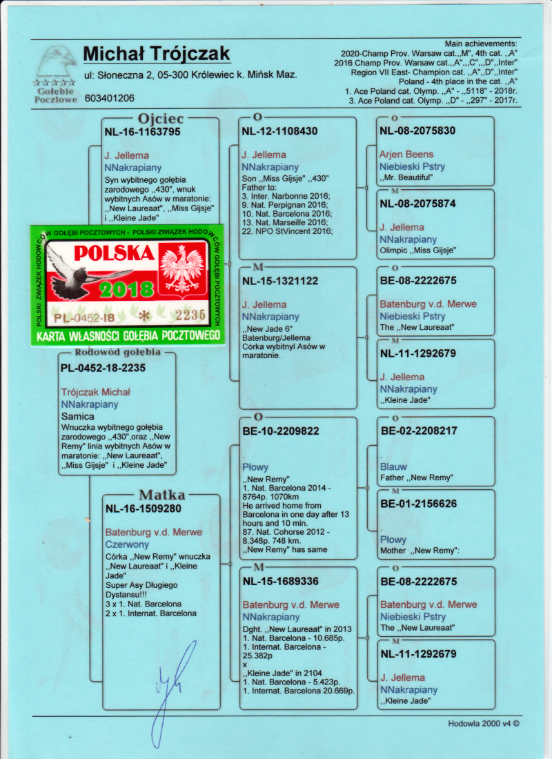 PL-012-25-9704 WG ROZTOCZE FINAŁ 57poz.505km EXTRA FINAŁ 82poz. 500km 54 AS 2X500km