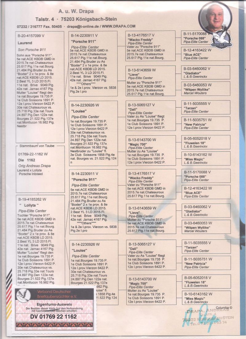 PL-097-24-17970 - oryg. Pigeon Sport Team M. Kapinos - G. Leś, córka: "Blue Mike" x "Blue Freedom", młody z tej samicy zdobył 4k./5wkł. w Oddziale PZHGP Zakopane