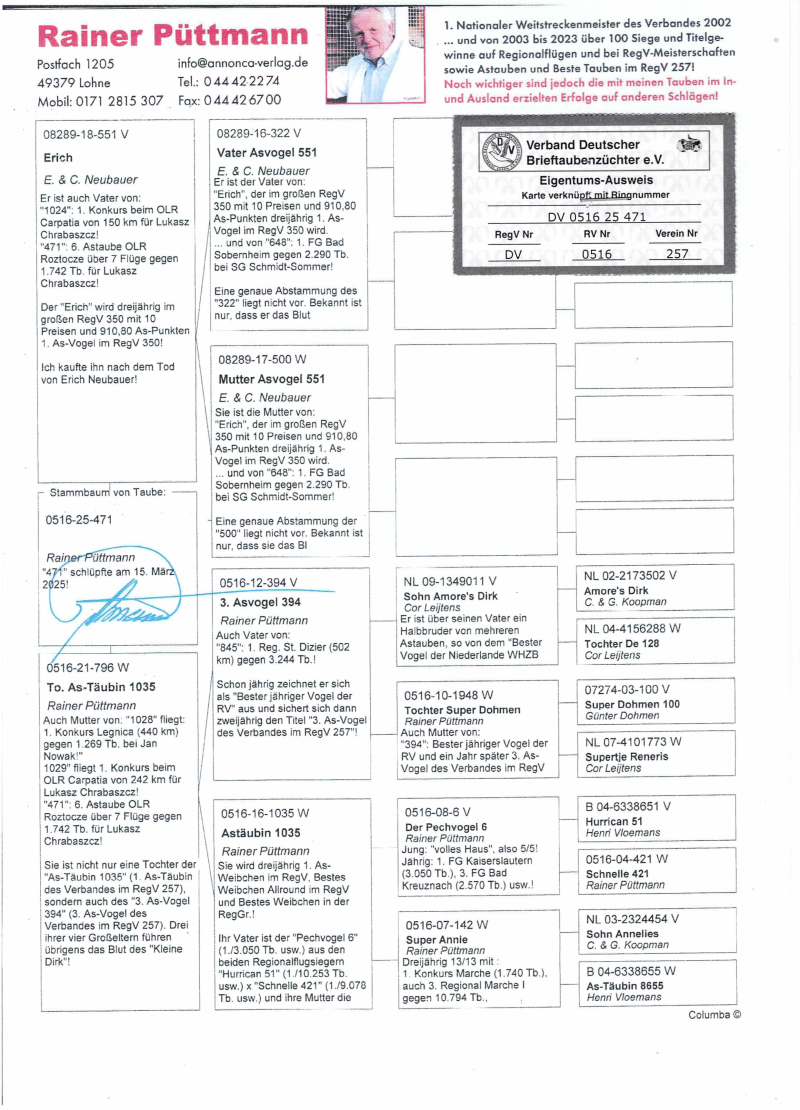 DV-0516-25-471 WG ROZTOCZE FINAŁ 74poz.505km 6 AS 15 AS Dalekodystansowy 8 drużyna ORYG.RAINER PUTTMANN