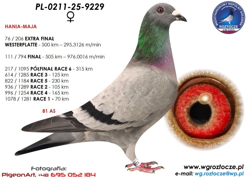 PL-0211-25-9229 WG ROZTOCZE FINAŁ 111 poz.505km EXTRA FINAŁ 76 poz.500km 2x500km HURRICAN 51