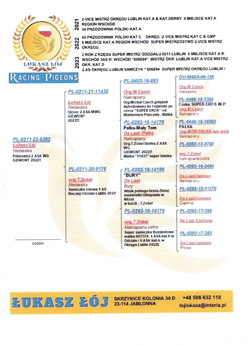 więcej info.w rodowodzie i na stronie Benzing Live.oneloftrace.live/lofts/260?season=2458&tab=flights