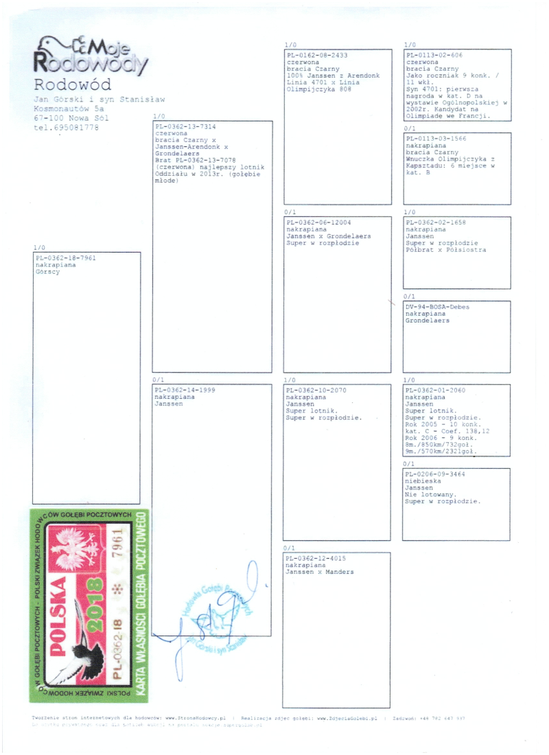 więcej info.w rodowodzie i na stronie Benzing Live.oneloftrace.live/lofts/260?season=2458&tab=flights