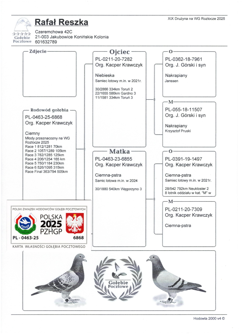 PL-0463-25-6868 WG ROZTOCZE FINAŁ 363poz. 505km 19 Drużyna