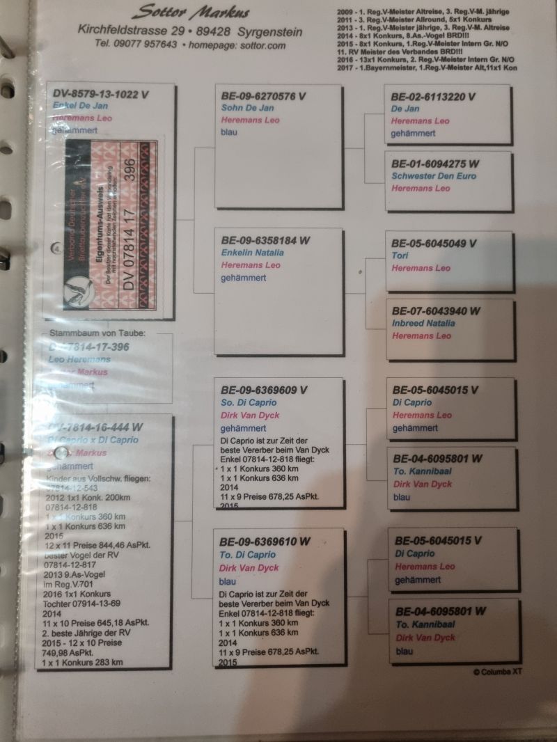 Sprzedam oryginalnego gołębia Sottor Markus super samiec rozpłodowy który wydał między innymi 9 lotnikach okręgu Kat A! Oraz wiele innych więcej info w rodowodzie cała hodowla na sprzedaż Zapraszam