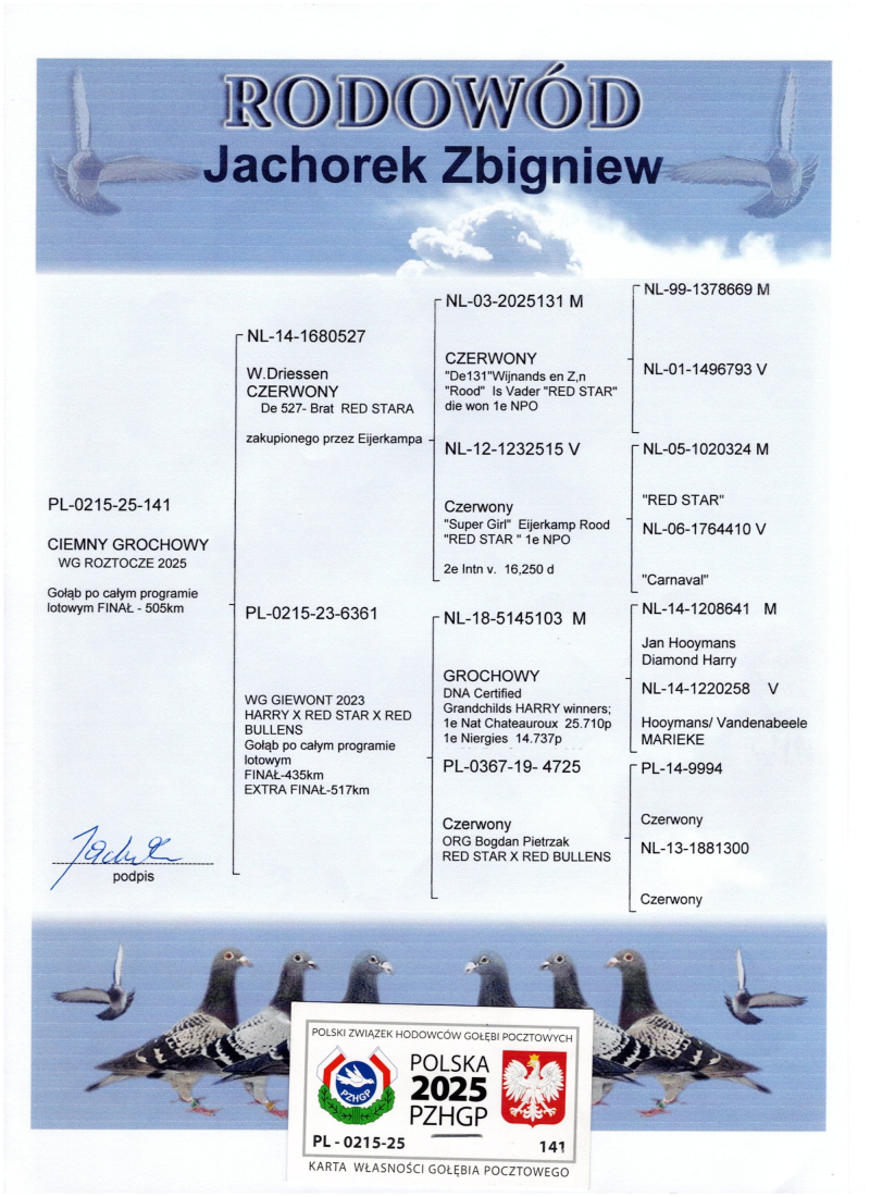 więcej info.w rodowodzie i na stronie Benzing Live.oneloftrace.live/lofts/260?season=2458&tab=flights