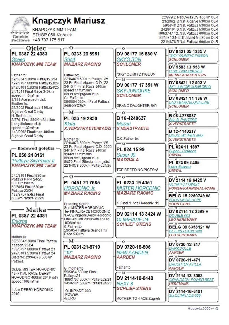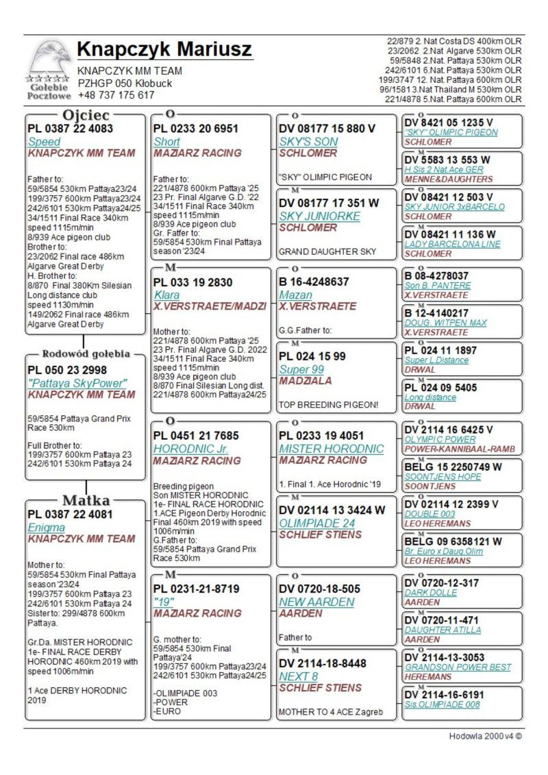 PL-0496-23-2996 KNAPCZYK MM TEAM, Brat "Pattaya SkyPower" i "Pattay SkyPower II" z gołębi Mistrza Świata!