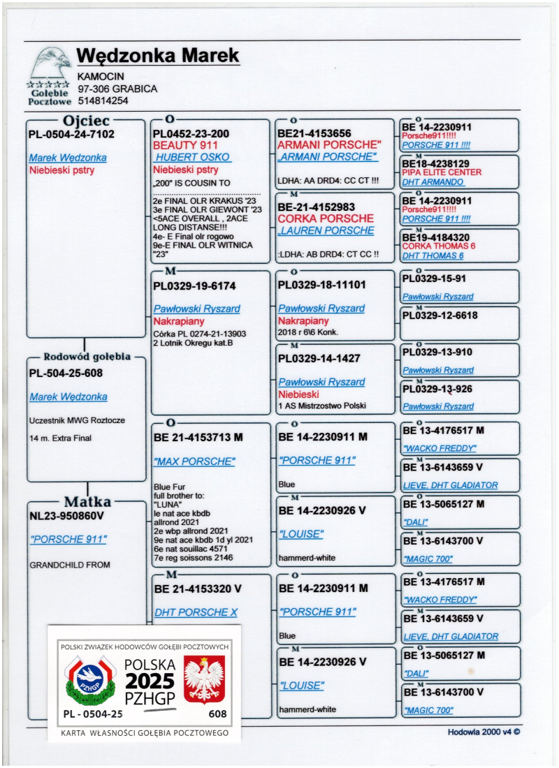 PL-0504-25-608 WG ROZTOCZE FINAŁ 256poz.505km EXTRA FINAŁ 14poz.500km 2x500km "PORSCHE 911"