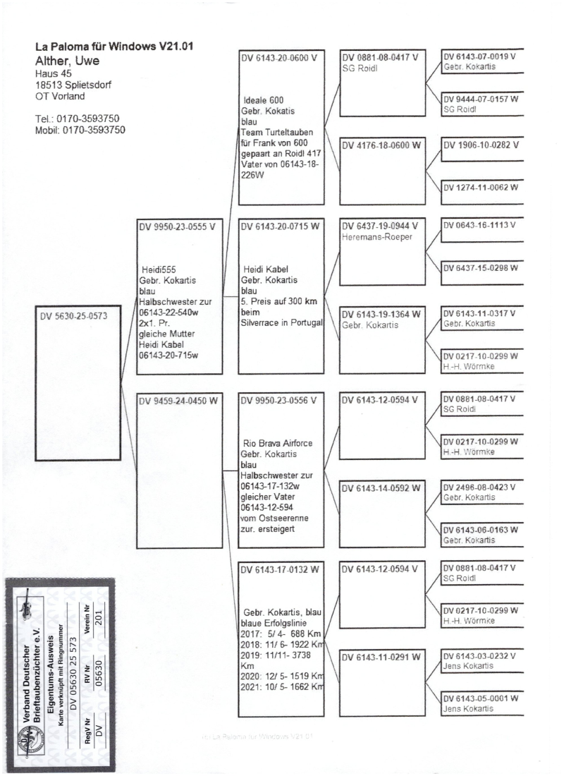 więcej info.w rodowodzie i na stronie Benzing Live.oneloftrace.live/lofts/260?season=2458&tab=flights