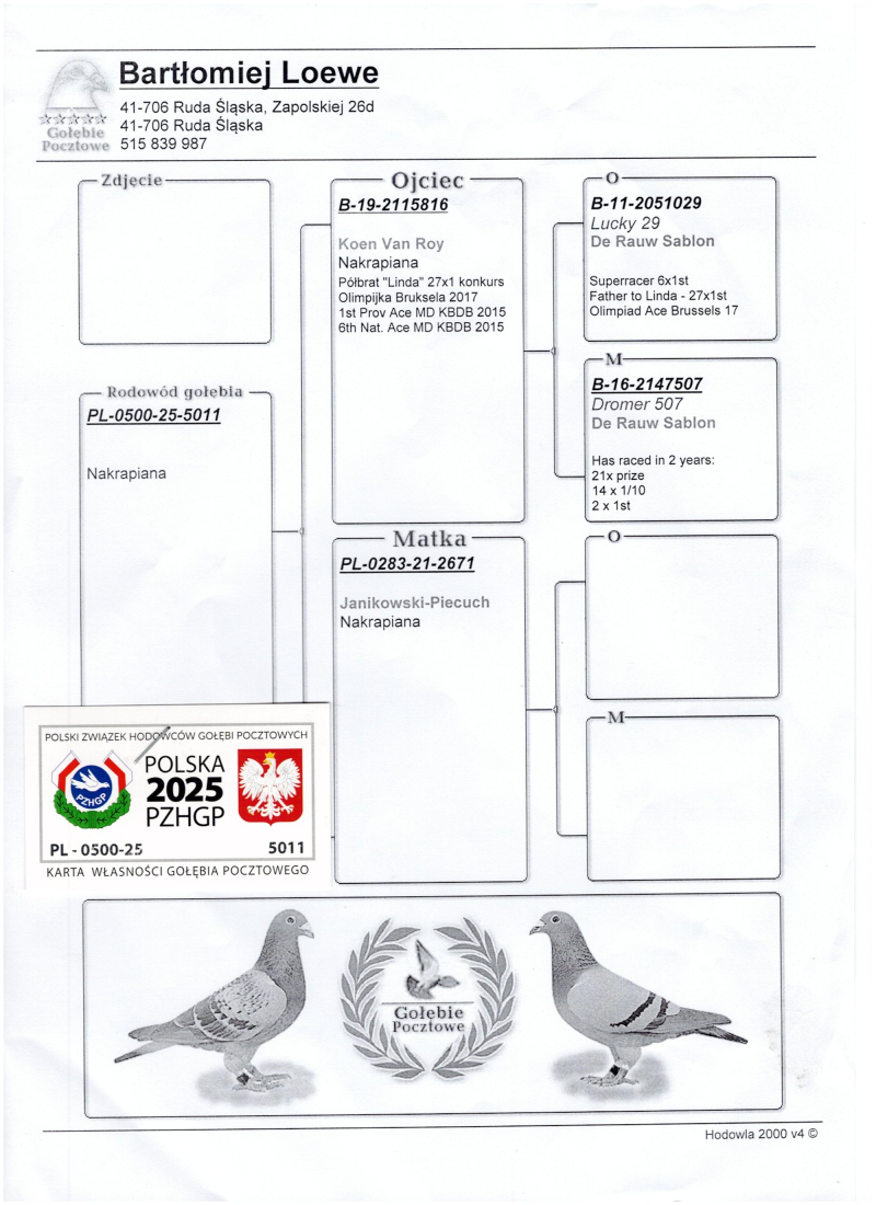 więcej info.w rodowodzie i na stronie Benzing Live.oneloftrace.live/lofts/260?season=2458&tab=flights