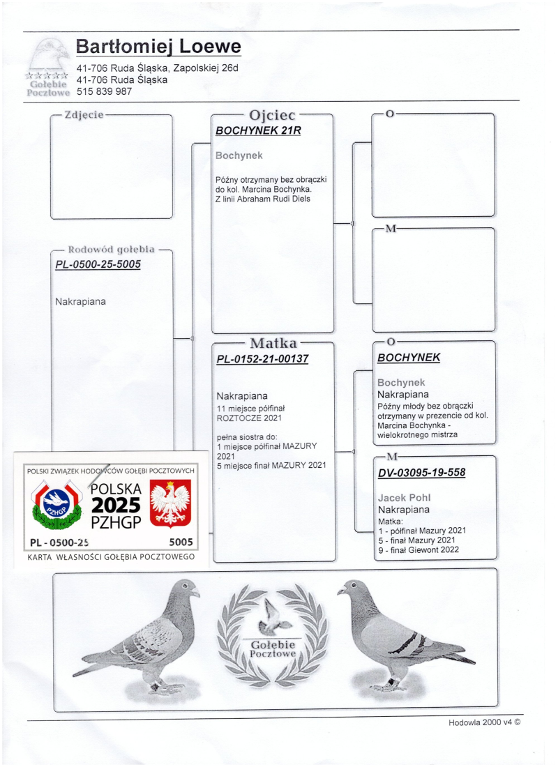 więcej info.w rodowodzie i na stronie Benzing Live.oneloftrace.live/lofts/260?season=2458&tab=flights