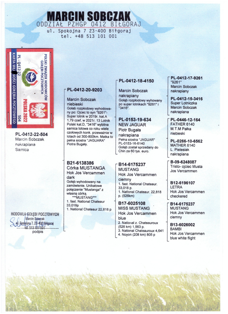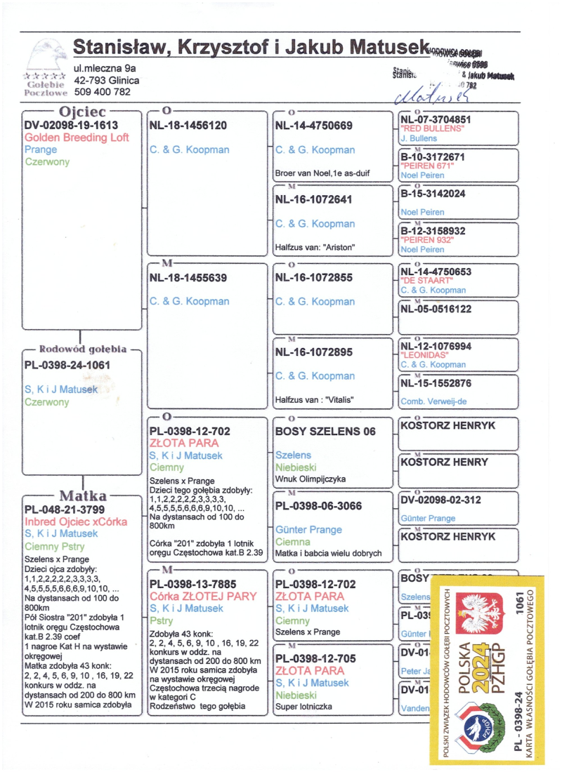 więcej info.w rodowodzie i na stronie Benzing Live.oneloftrace.live/lofts/260?season=2458&tab=flights