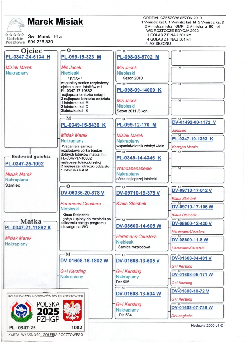 więcej info.w rodowodzie i na stronie Benzing Live.oneloftrace.live/lofts/260?season=2458&tab=flights