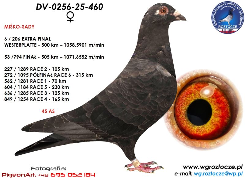 DV-0256-25-460 WG ROZTOCZE FINAŁ 53poz.505km EXTRA FINAŁ 6 poz.500km !!! 2x500km