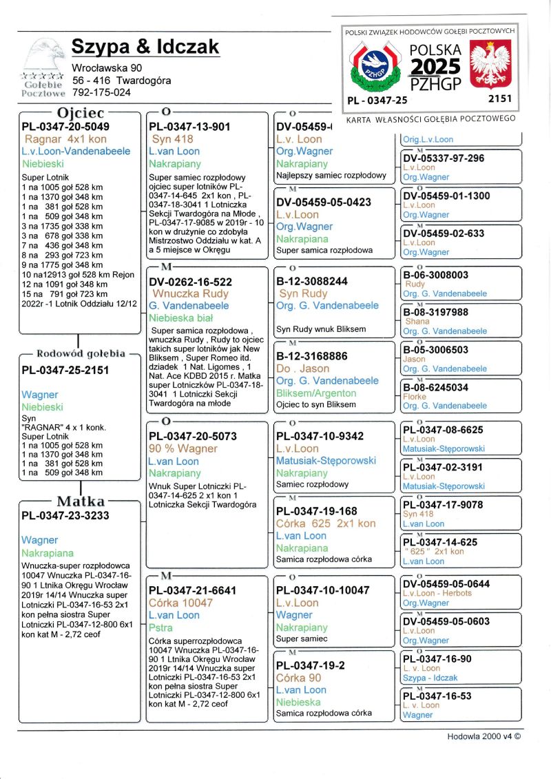 Profesjonalna hodowla z wieloletnim doświadczeniem, posiadająca w swoim stadzie materiał najwyższej światowej klasy. Więcej informacji w załączonych materiałach oraz pod nr tel. 792-175-024 Oferowany gołąb to prawdopodobnie SAMCZYK. Płeć pisana orientacyjnie